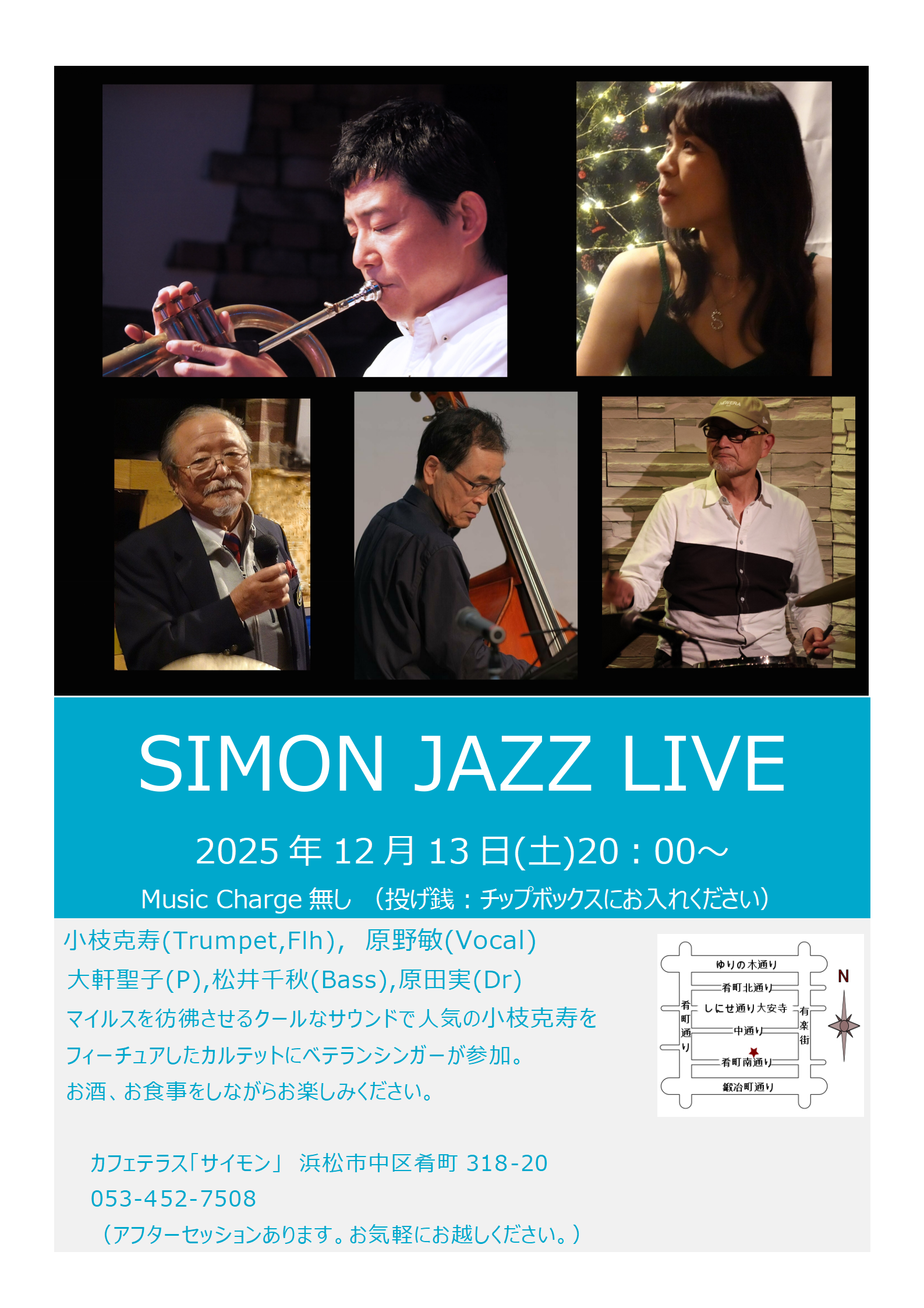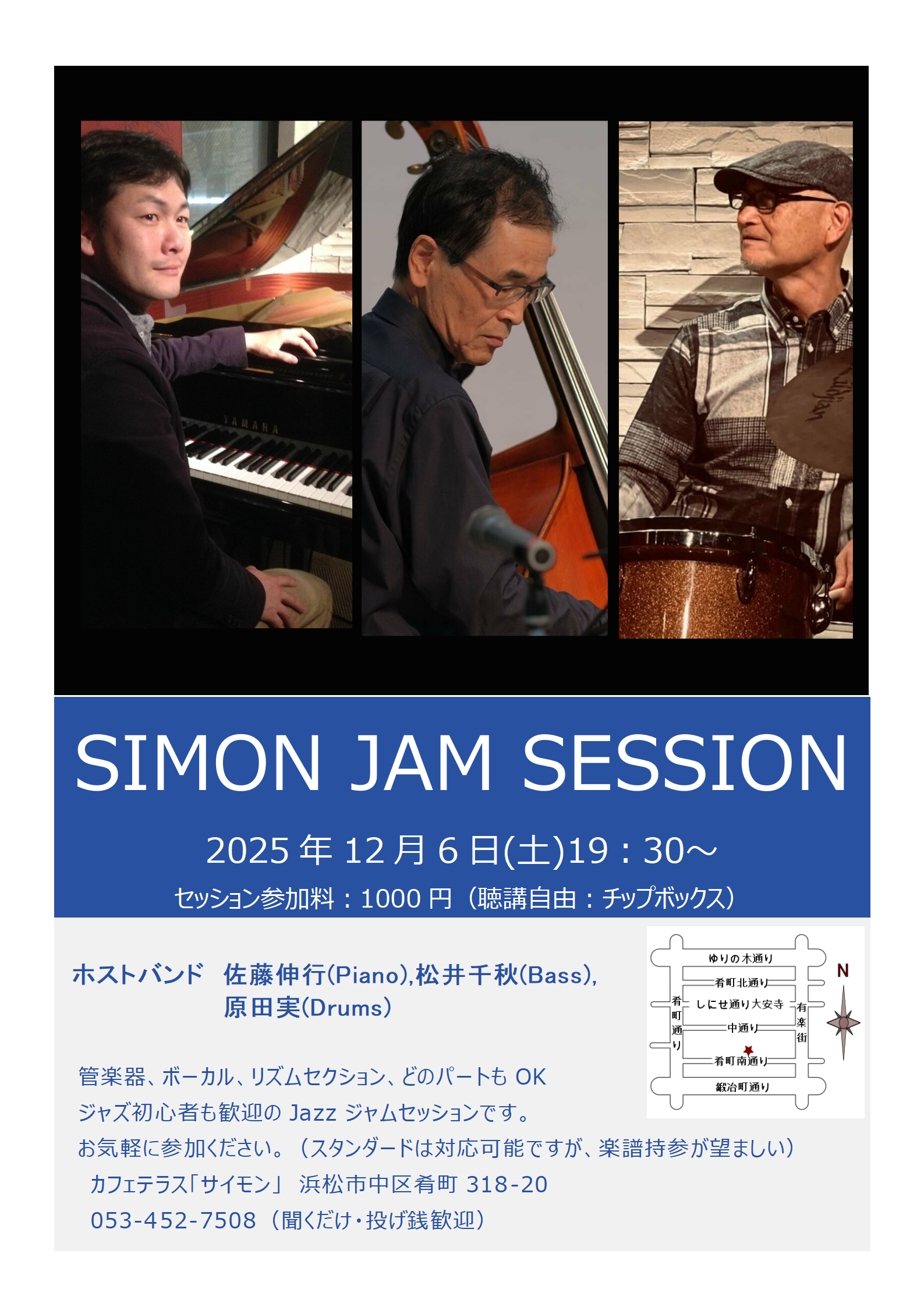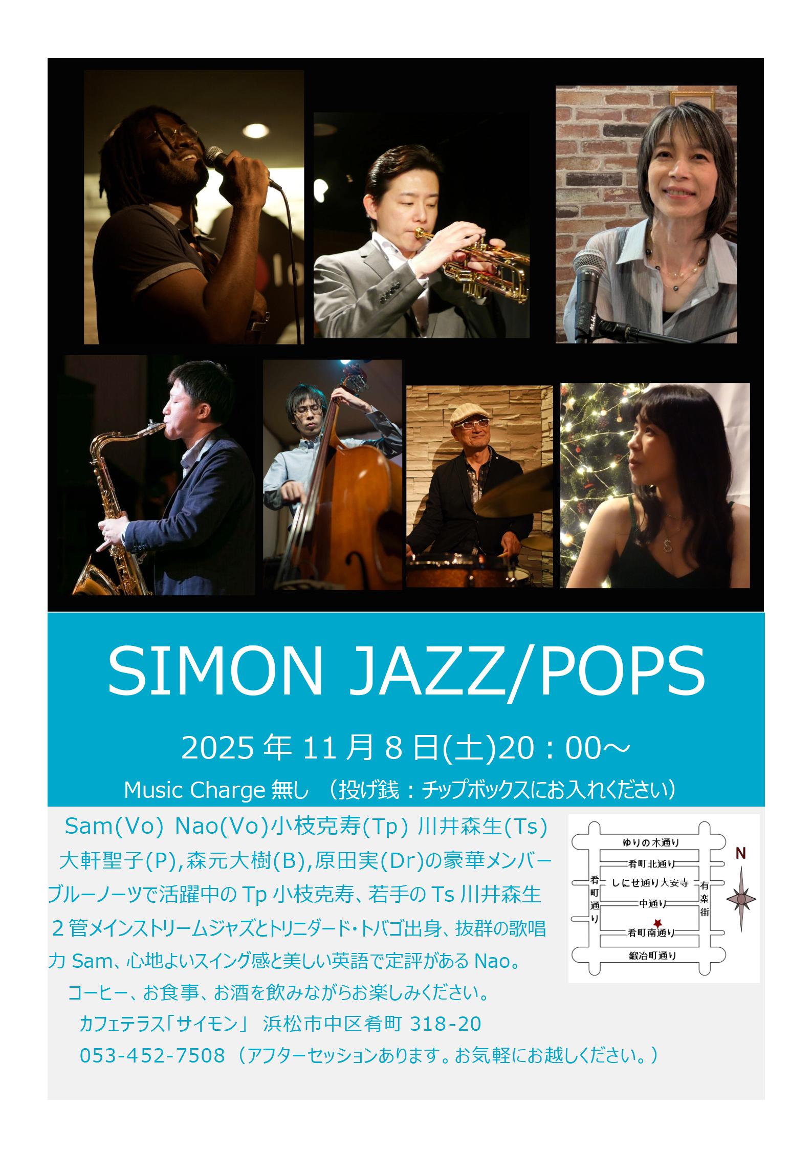 SIMON JAZZ LIVE Schedule カフェ「サイモン」 浜松市中区肴町318-20 Tel 053-452-7508 #浜松ジャズライブ #浜松セッション